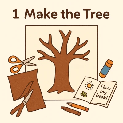 - Cut a big tree trunk and branches out of brown paper.